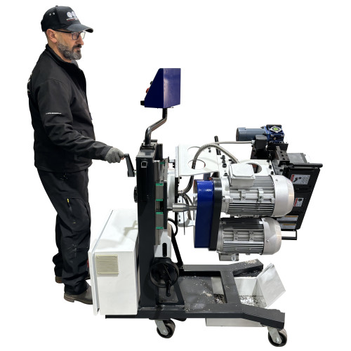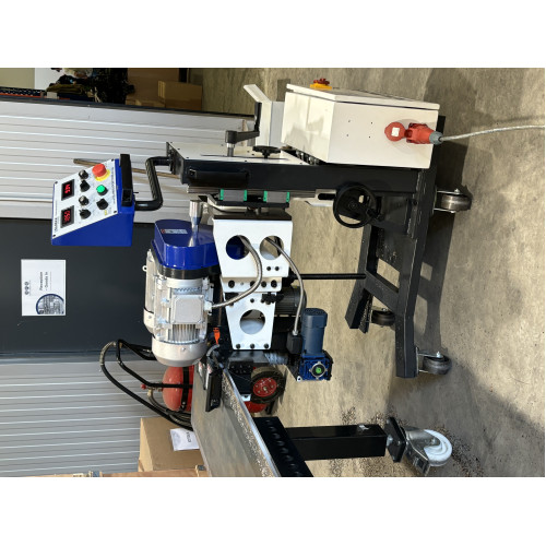 A gép magassága kézi hajtókarral könnyedén állítható a feldolgozandó lemez magasságához, így biztosítva a tökéletes gép-lemez igazítást a pontos élletörésekhez. Az elektromos rögzítőmechanizmus stabilan rögzíti a gépet a lemezhez, garantálva a biztonságos és megbízható működést.